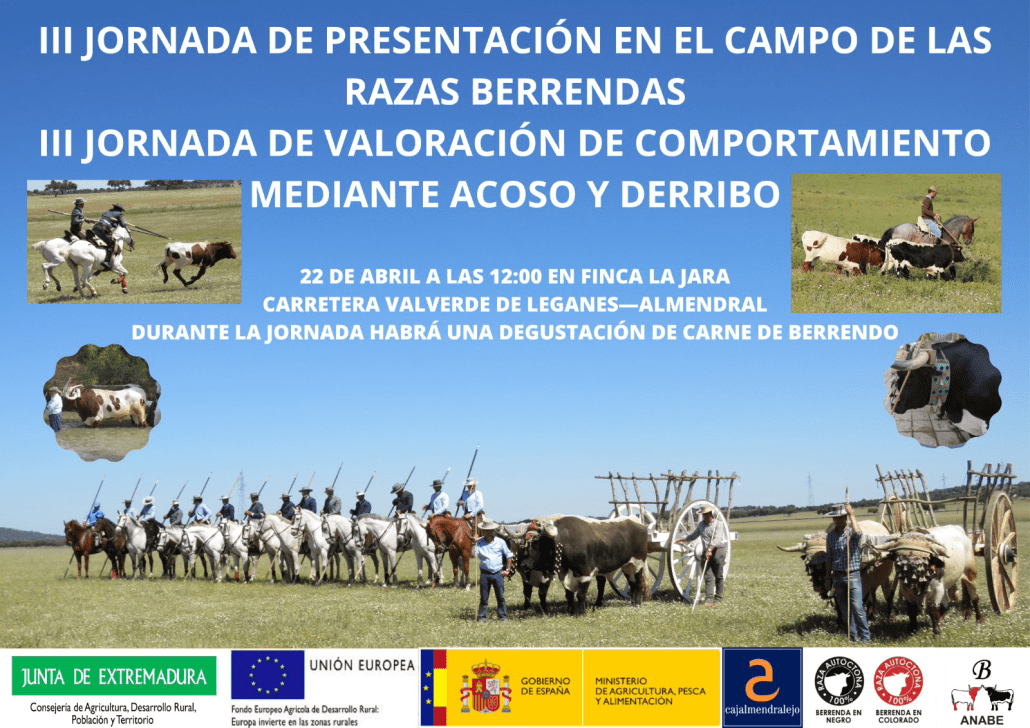 El próximo sábado 22 de abril, la Agrupación Nacional de Asociaciones de Criadores de las razas Berrenda en Colorado y Berrenda en Negro (ANABE) organiza las III Jornadas de presentación en el campo de las razas Berrendas y las III Jornadas de valoración de comportamiento mediante acoso y derribo.