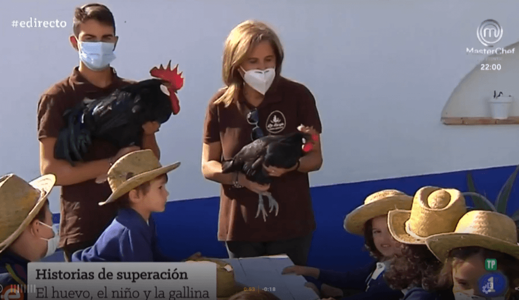Ayer, martes 20 de octubre, el programa de Televisión Española España Directo emitió un reportaje desde la granja ecológica La Barja, en Tomelloso, donde Eloísa Perales, socia de Amigos de la Gallina Negra Castellana (GANECA) cuya explotación está incluida en nuestro listado de proveedores de #ProductosDeSelección, recibía a unos escolares para enseñarles los secretos sobre las gallinas y los huevos.