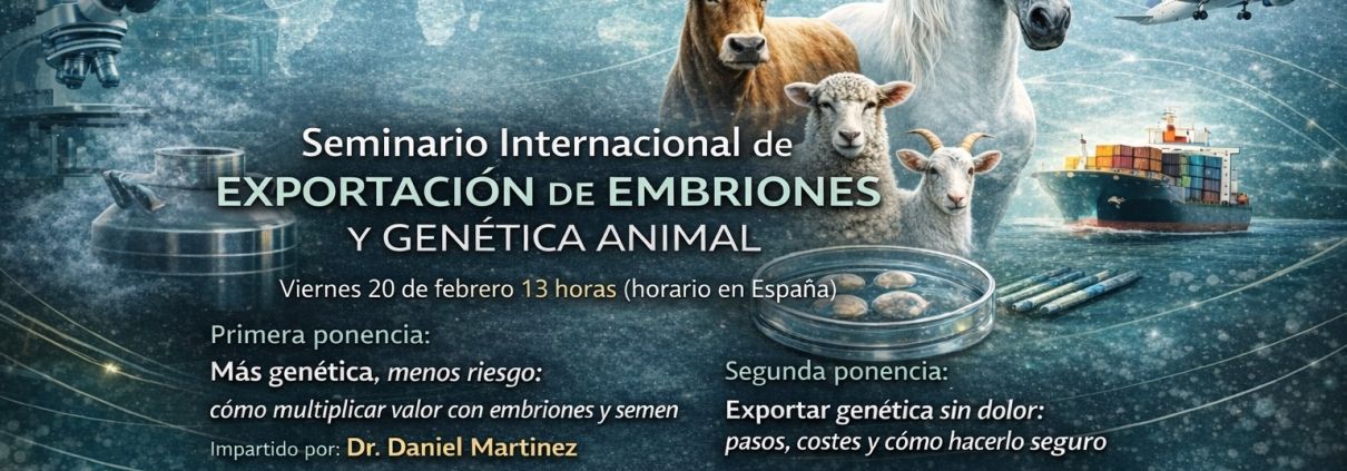 El próximo viernes 20 de febrero a las 13:00 horas (horario de España) se celebrará el Seminario Internacional de Exportación de Embriones y Genética Animal, un encuentro formativo centrado en las oportunidades y procedimientos para la internacionalización de material genético ganadero.